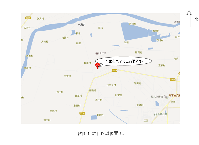 東營市泰宇化工有限公司位于墾利縣勝坨鎮(zhèn)工業(yè)園區(qū)。廠區(qū)北面為勝坨鎮(zhèn)工業(yè)園區(qū)道路,路對面為東辰集團(tuán)建筑安裝有限公司,南側(cè)為寶仕達(dá)公司(為油田生產(chǎn)設(shè)備配件的企業(yè)),東側(cè)為東辰集團(tuán)溶劑油項目,西側(cè)為工業(yè)園區(qū)道路,道路西側(cè)為空地。 |