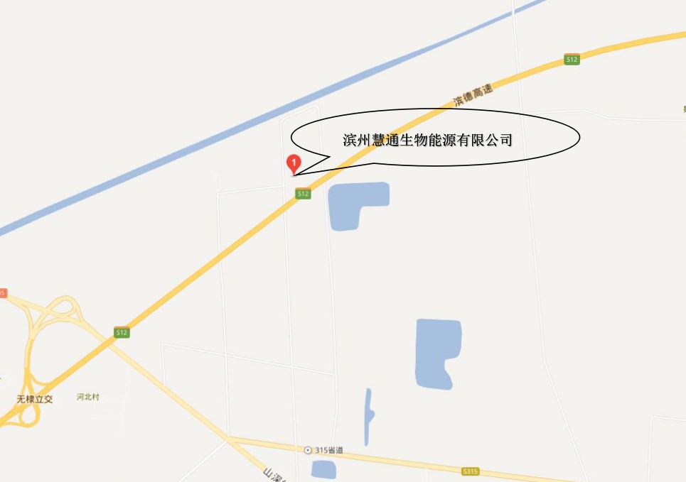 濱州匯通生物能源有限公司與高清瑞雪印務(wù)有限公司(石油化工企業(yè))在同一個(gè)廠區(qū)內(nèi)。廠區(qū)北側(cè)為山東鑫諾污水處理廠(一般企業(yè));東側(cè)為開發(fā)區(qū)路;路南為濱德高速。廠區(qū)西北側(cè)一條東西走向的架空電力線引至廠區(qū)西北側(cè)的變配電室。廠區(qū)據(jù)東北側(cè)的大王村約2000米。 |