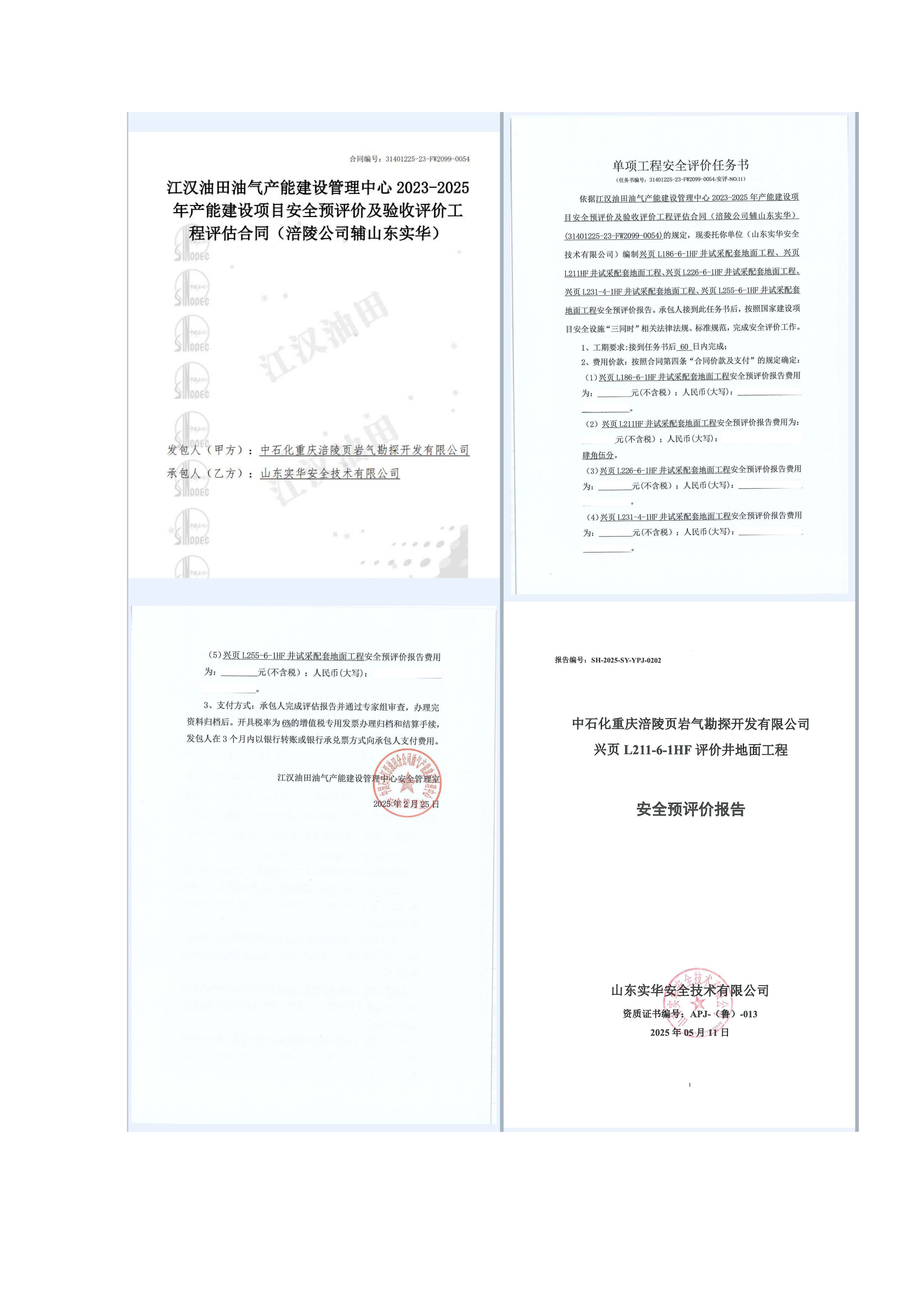 中石化重慶涪陵頁巖氣勘探開發(fā)有限公司興頁L211-6-1HF評價井地面工程安全預(yù)評價