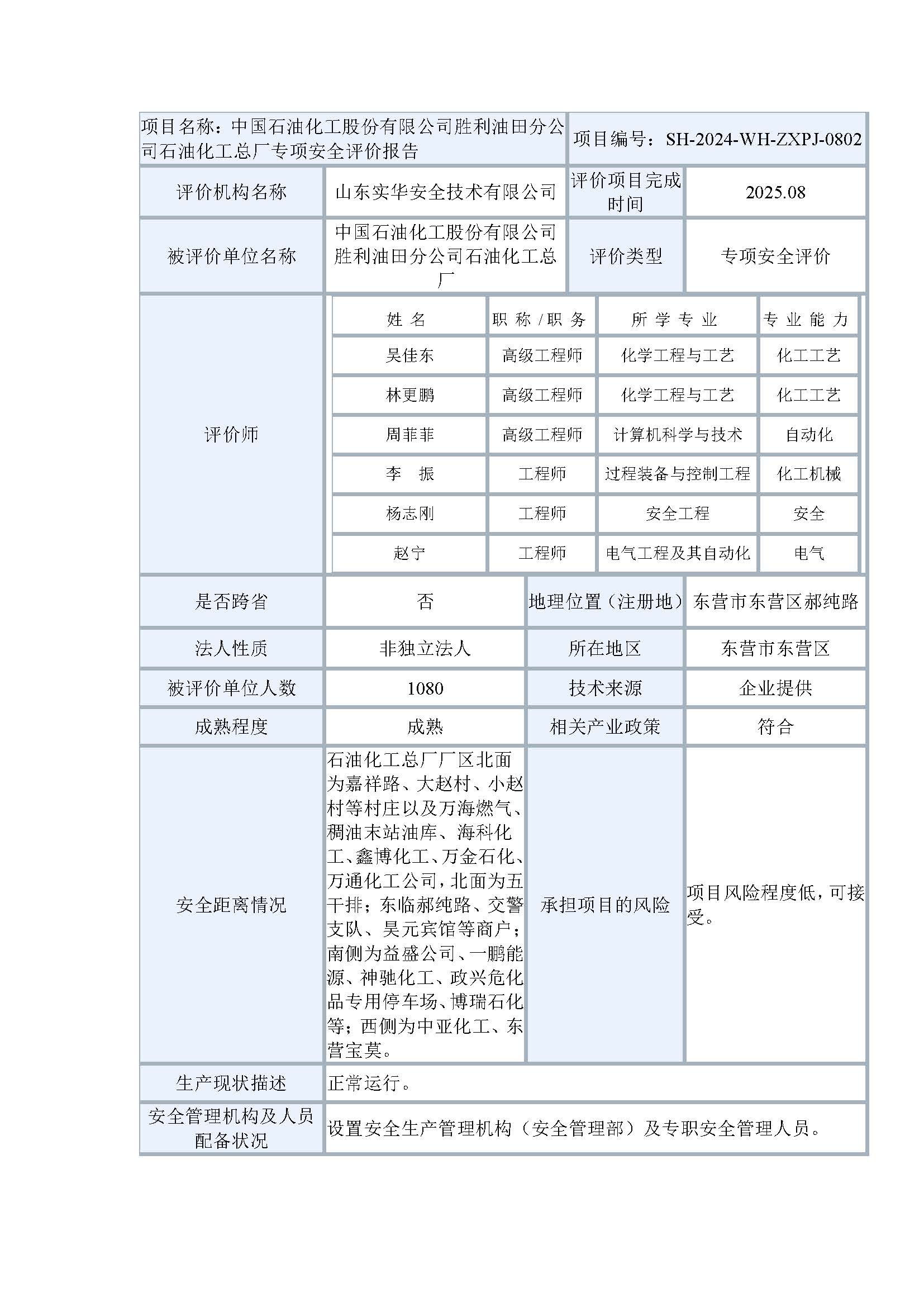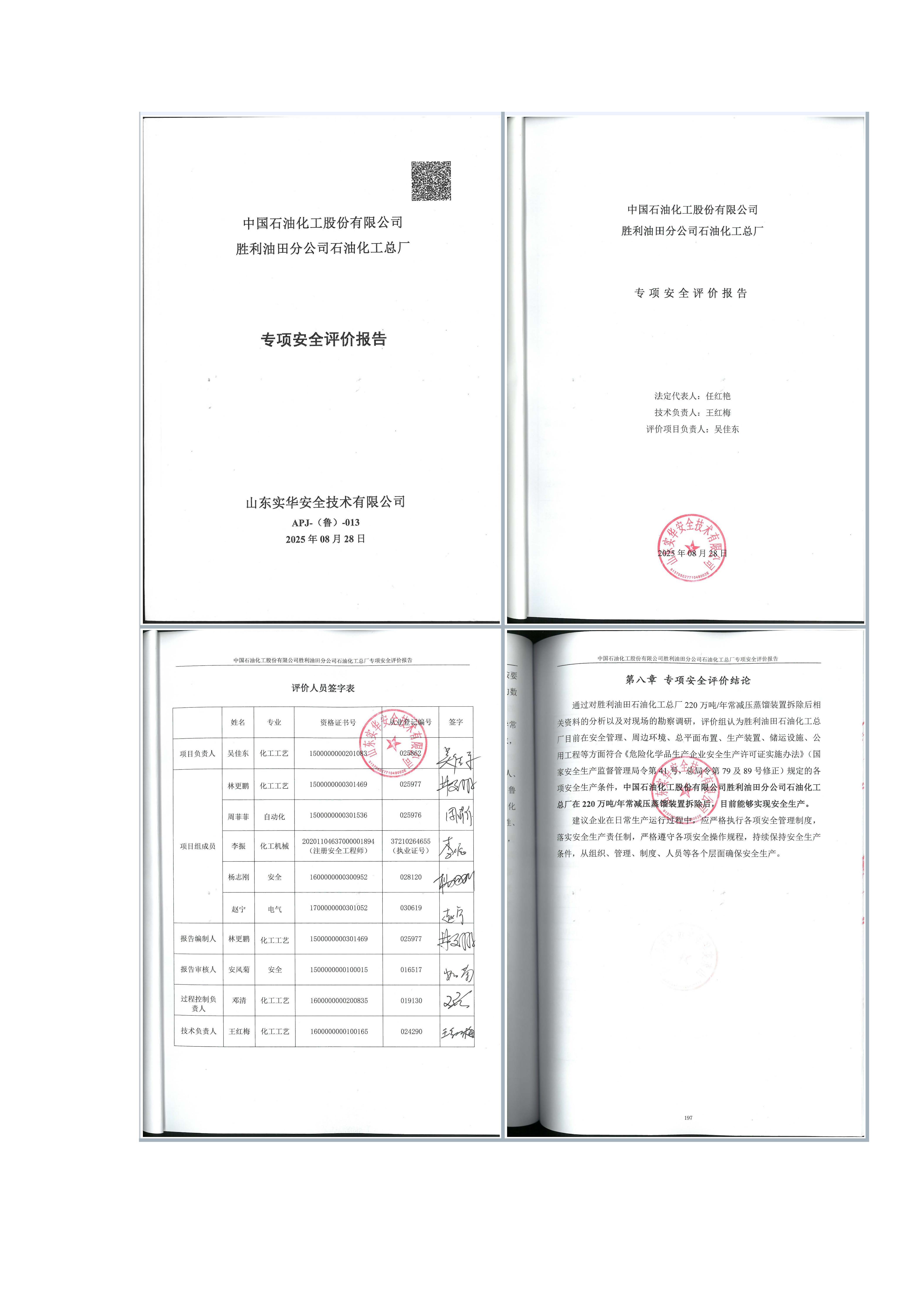 中國(guó)石油化工股份有限公司勝利油田分公司石油化工總廠專項(xiàng)安全評(píng)價(jià)報(bào)告